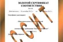 Школа в третий раз получили золотой сертификат соответствия 10.12.2012