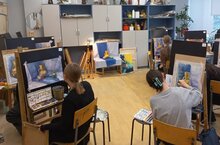В нашей школе важное событие – выставка работ нашей талантливой выпускницы Алексеевой Софьи. Софья закончила художественную школу в 2022 году, а сейчас учиться в Санкт-Петербургском государственном архитектурно-строительном университет. Для того, чтоб поступить в такой крупный вуз, Софья совершила удивительное путешествие в мир искусства, с которым можно частично познакомиться на выставке.