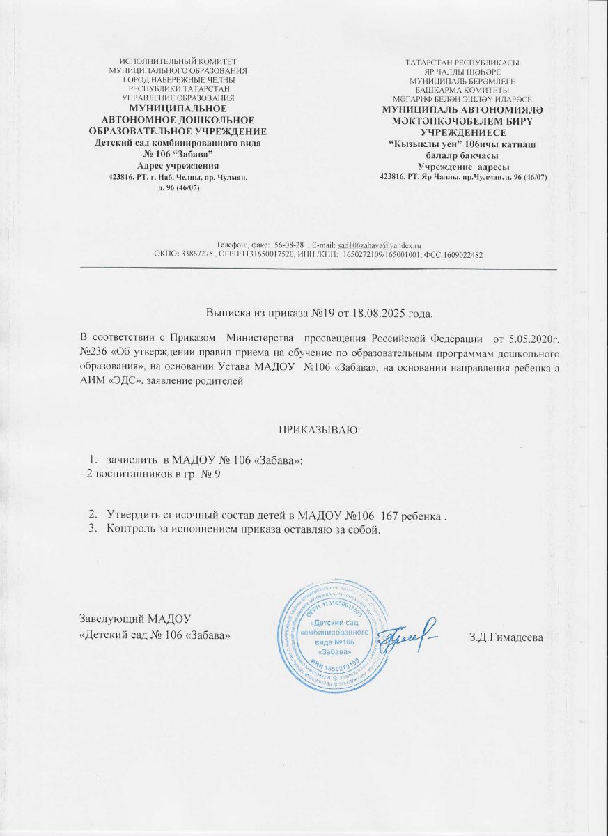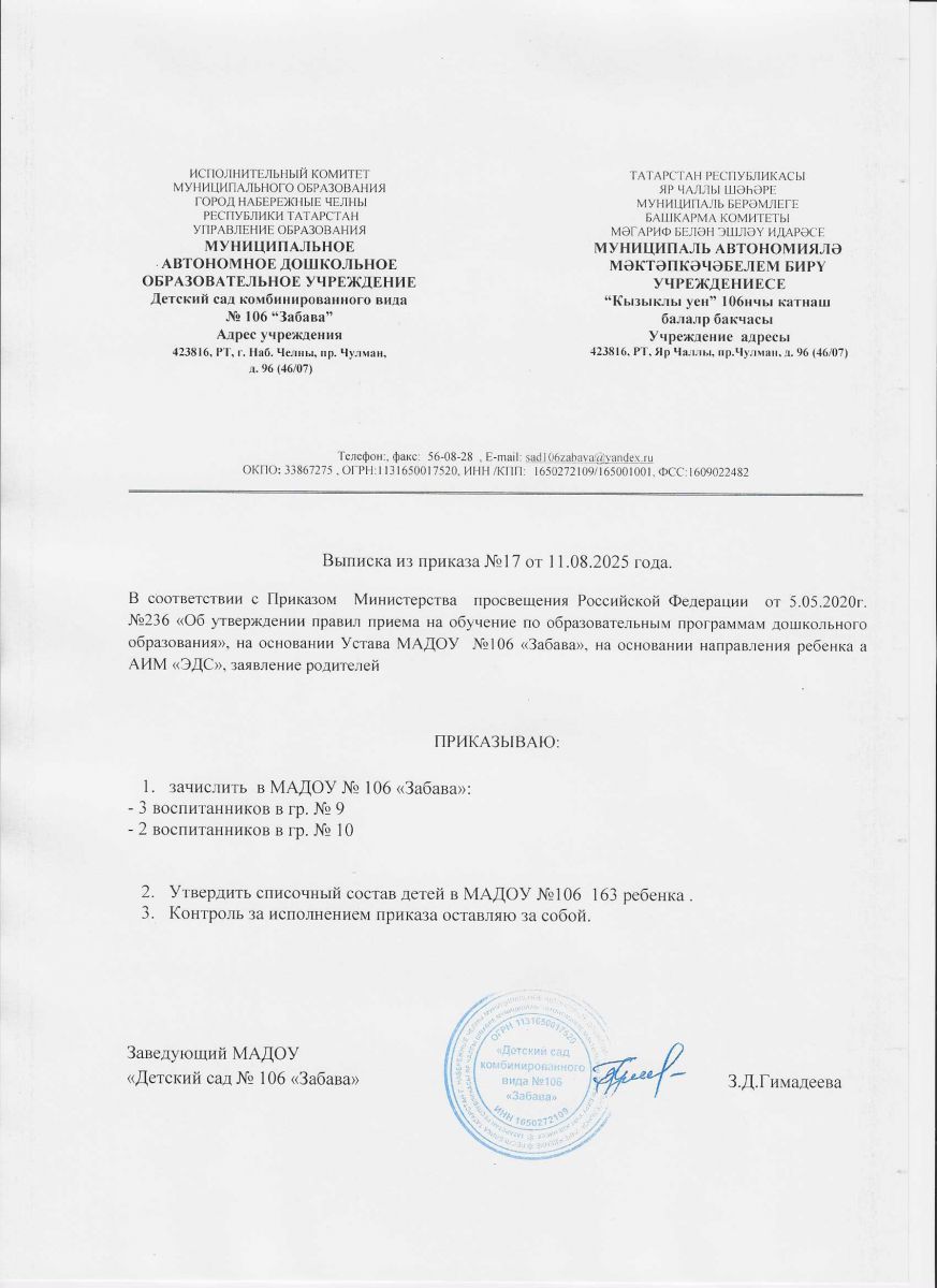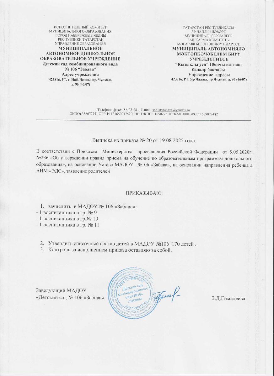 Муниципальное автономное дошкольное образовательное учреждение города Набережные Челны «Детский сад комбинированного вида № 106 «Забава» Яр Чаллы шәһәренең «106 нчы «Кызыклы уен» катнаш төрдәге балалар бакчасы» муниципаль автономияле мәктәпкәчә белем бирү учреждениесе"