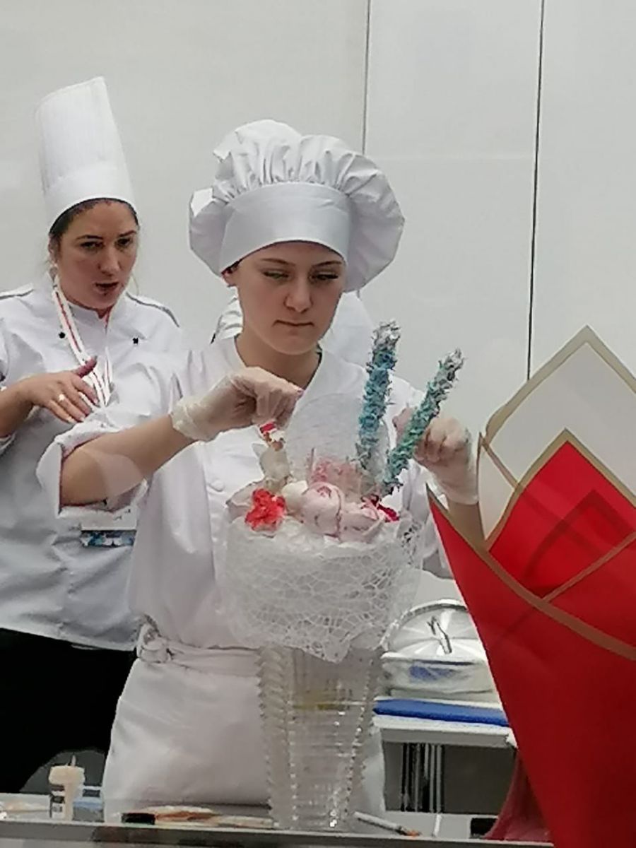 Опубликовано: 29.10.2024Барова Варвара (профессия "Кондитер сахаристых изделий") в компетенции Мастер пищевого арт -декора заняла 4 место среди 5 участников.