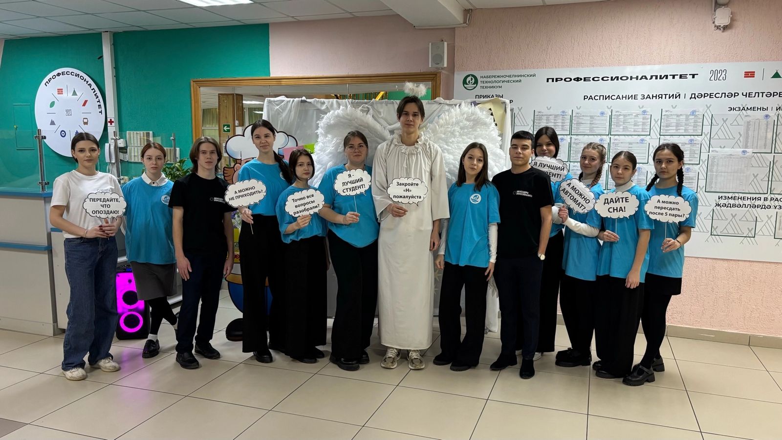 Праздничное утро началось с сюрприза – ангельской фотозоны, где каждый студент мог сделать памятное фото и зарядиться позитивом на весь день.
