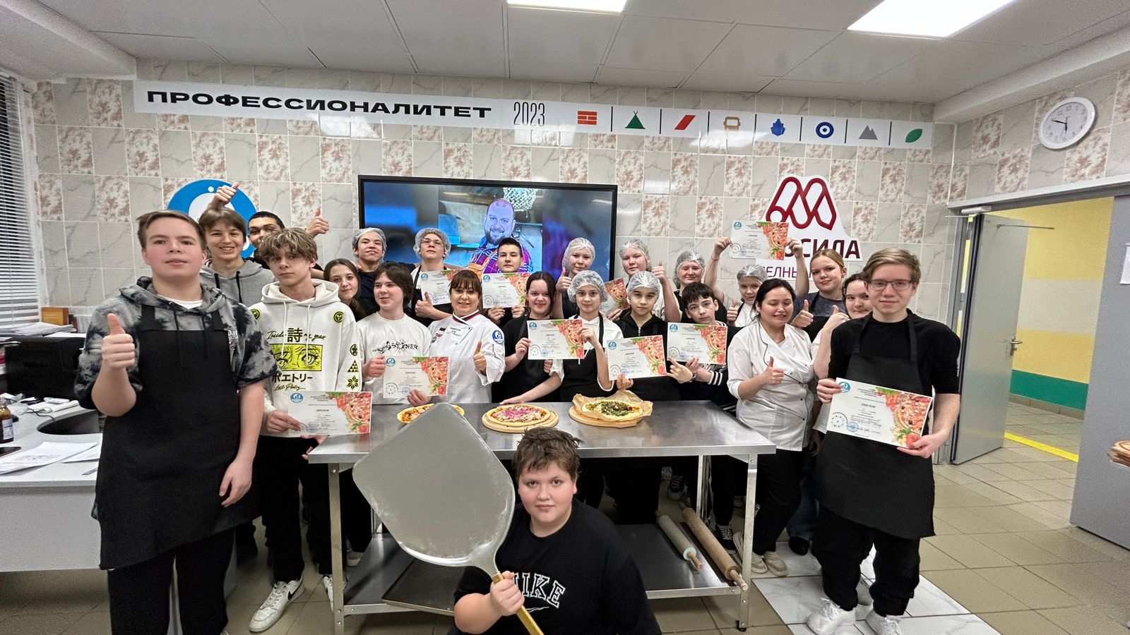 После мастер-класса ученики СОШ N 17, 42, 62, 35, 15, 32, 22 разделились на 10 команд и принялись за приготовление своей оригинальной пиццы, используя различные начинки. Жюри оценило работу каждой команды, и все участники получили свои первые дипломы в профессиональном конкурсе.