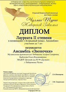 Опубликовано: 29.02.2024Поздравляем наших воспитанников и педагогов с очередной победой в Республиканском фестиваль- конкурсе "Первые шаги" и в открытом Всероссийском вокальном фестиваль - конкурсе " Жаворонок Закамья". Желаем всем творческих успехов и дальнейших побед!