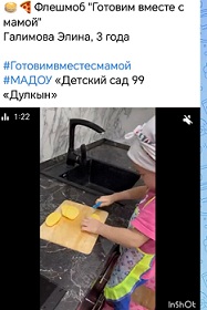 Опубликовано: 18.11.2024Наши воспитанники второй младшей группы № 3 b 9 , вместе с мамами, приняли участие в городском флешмобе "Готовим вместе с мамой!". Дети вместе с мамами готовили татарские народные блюды, выпички к чаю. Благодарим наших мам за активность.