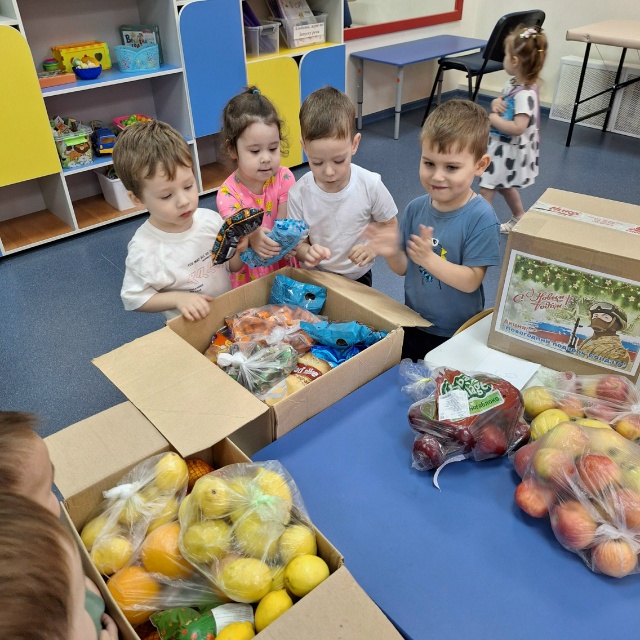 На собранные средства коллективом детского сада были преобретены мандарины, апельсины, лимоны, яблоки и шоколад для наших бойцов. Родители принесли много фруктов, сладостей и влажные салфетки. Дети написали письма с теплыми пожеланиями.