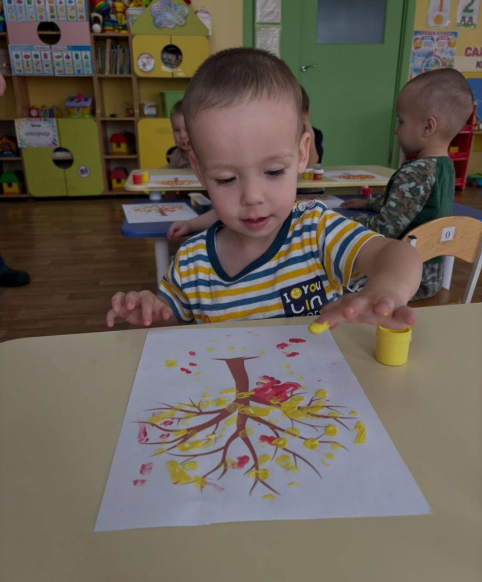 Рисование пальчиками в первой младшей группе 12 «Осеннее дерево»