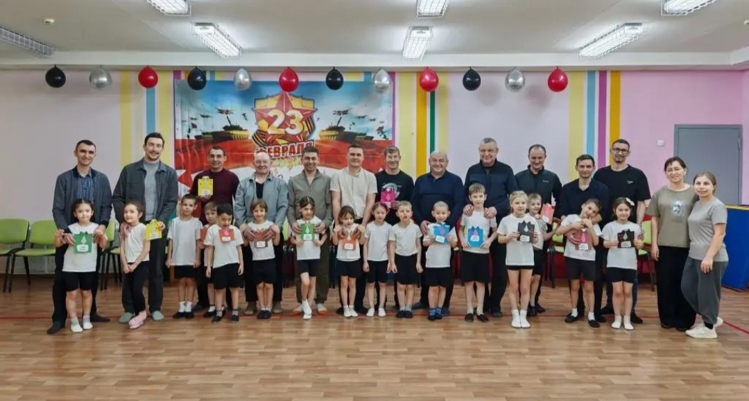 В физкультурном зале развернулись настоящие баталии: папы соревновались друг с другом в ловкости, силе и выносливости. Участники преодолевали полосу препятствий, метко бросали мячи в цель, проявляли смекалку в эстафетах. Дети активно болели за своих отцов, создавая атмосферу настоящего семейного единения.Папы продемонстрировали настоящую боевую подготовку, показывая детям важность дисциплины и силы духа.