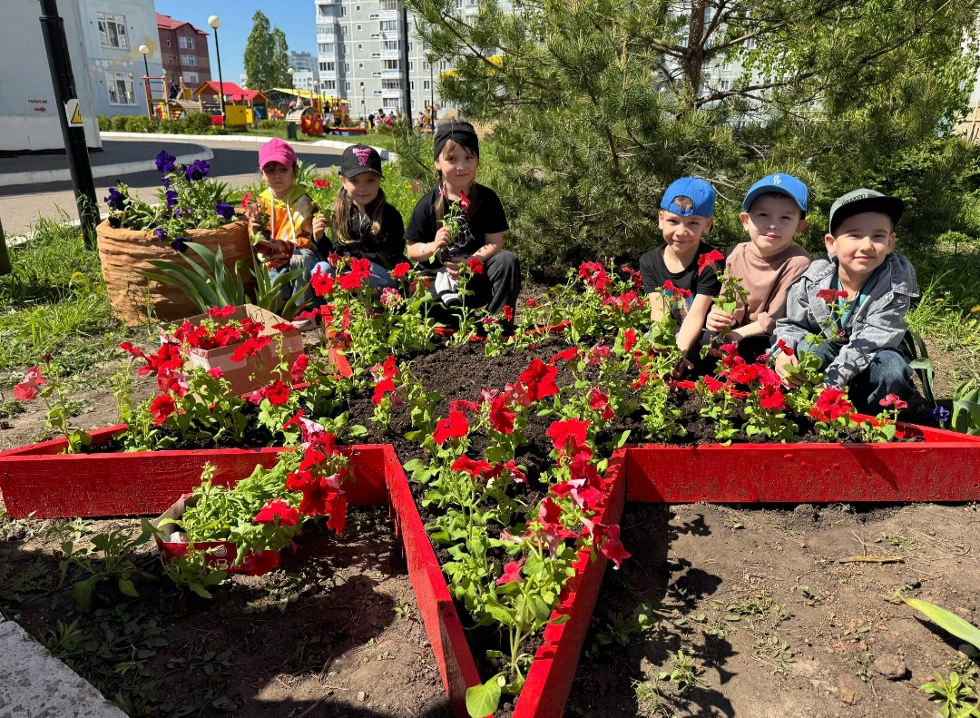 Сегодня состоялось очень важное событие - дети группы 12 посадили красные петунии на «Клумбу выпускников 2025»!