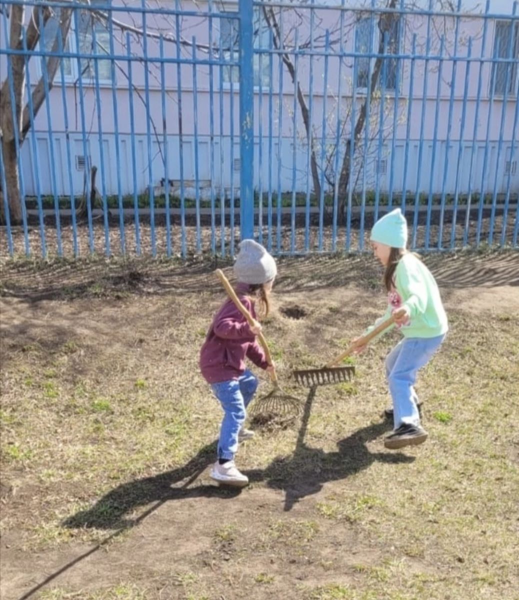 Педагог Шайдуллина Гульнур Асгатовна вместе с детьми убрали территорию участка, вскопали, подготовили землю для посадки цветов.