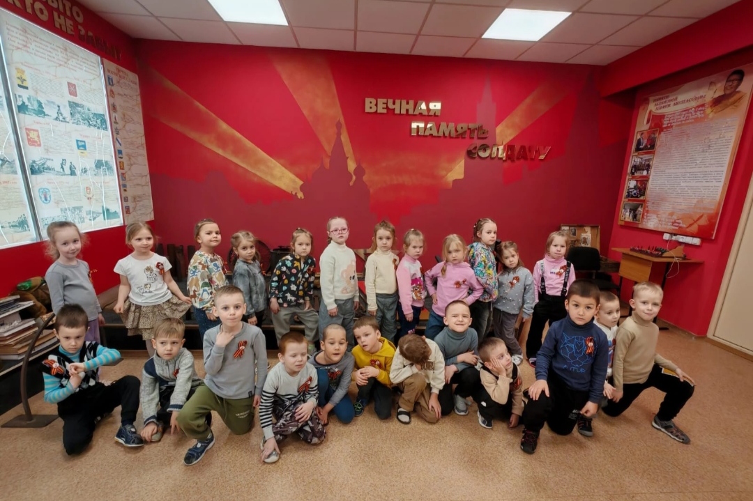 14 апреля 2025 года в рамках «Года защитника Отечества и 80-летия Великой Победы» воспитанники средней группы 9 посетили военно-исторический музей "Подвигу жить" в кадетской школе 82 им. Героя Советского Союза И. М. Маннанова. Дети с особым вниманием слушали рассказ о подвиге Героя Советского Союза Ильдара Маннанова и о подвигах нашего народа в годы ВОВ, рассматривали экспонаты: винтовки, каски, фляжки, шинель и личные вещи участников Великой Отечественной войны.