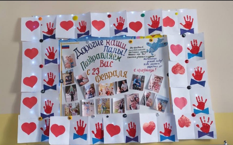 В течение недели в холле оформлена выставка детских творческих работ и в каждой группе поздравительные стенгазеты, посвящённых дню Защитника Отечества.