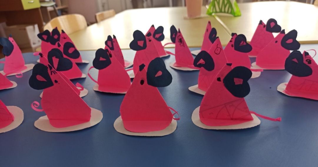 14 февраля "День Святого Валентина - День всех влюбленных" отмечается в России не очень давно, но уже стал одним из любимых праздников. Открытки в виде сердечек своими руками - самый традиционный подарок. Оригинальный подарок для своих близких приготовили и воспитанники 12 группы - сделали аппликацию «Мышка» из сердечек. Дорогих пап и мам такой подарок тронул до глубины души.