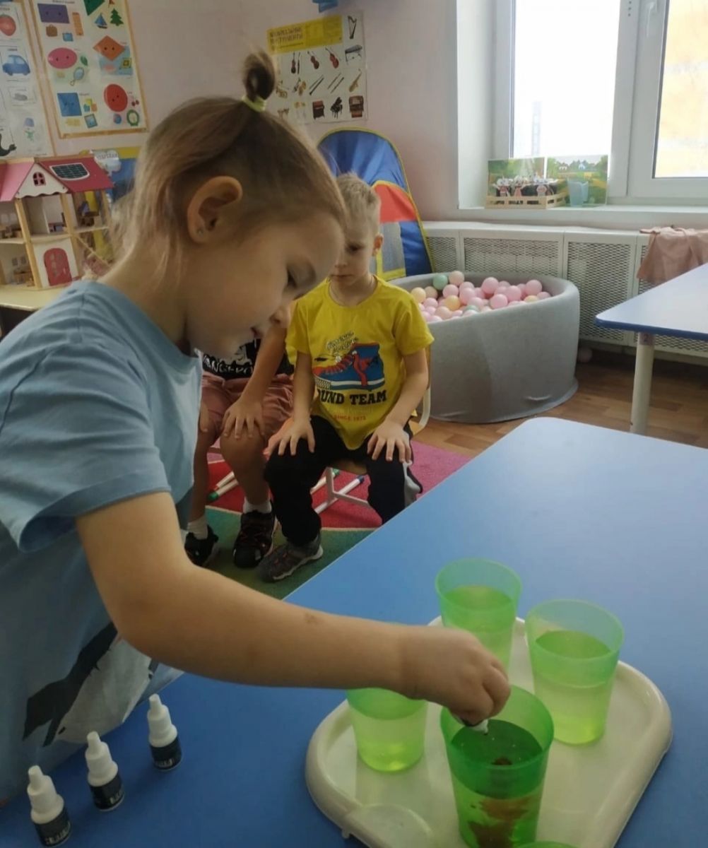 В этом возрасте дети знают, что растения пьют воду при помощи корней. Но вот как вода движется по растению от корня к листьям? Воспитанники группы 9 под руководством воспитателя Анастасии Дмитриевны решили узнать это наглядно.