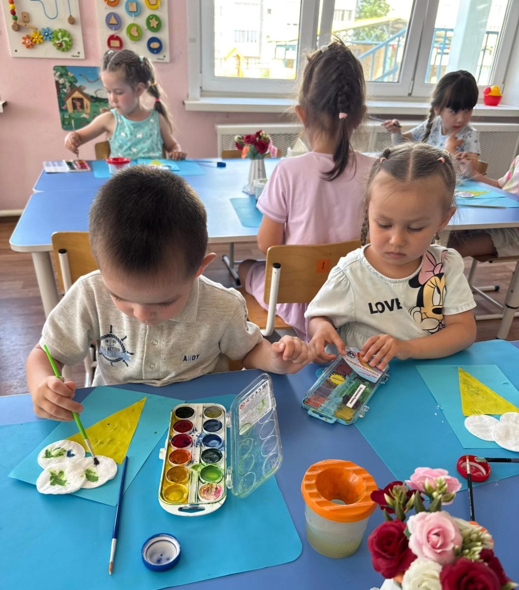Красота летнего сезона вдохновила воспитанников группы 9, под руководством педагога Анастасии Дмитриевны создать картины с помощью техники аппликации на скотче.