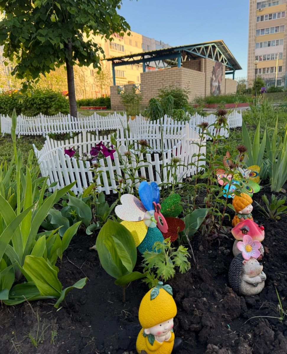 Вот такие милые клумбы создали воспитанники группы 9 вместе с Анастасией Дмитриевной и родителями