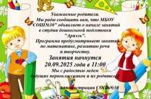 о начале занятий в студии дошкольной подготовки "Ариель"