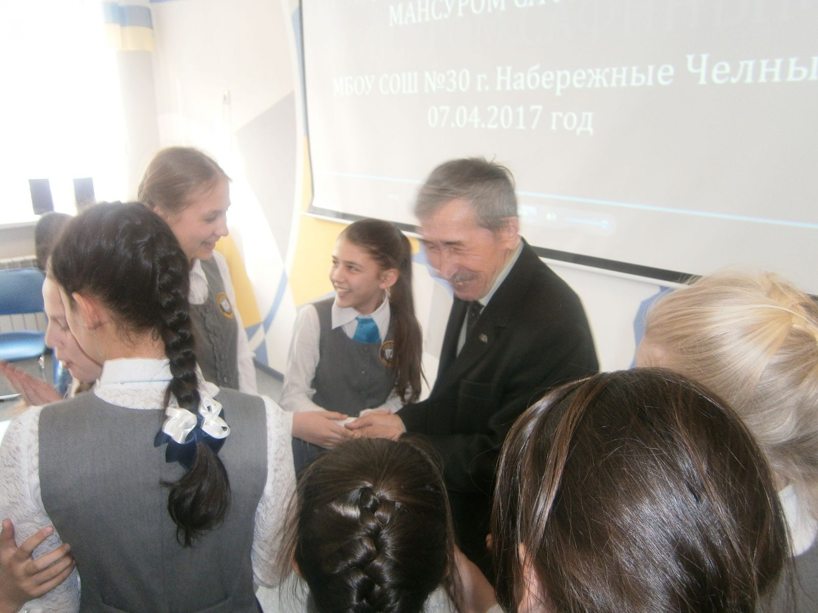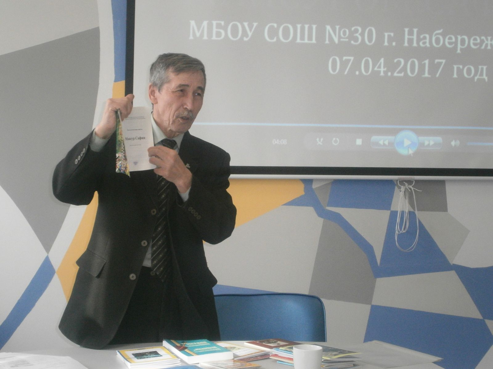Творческая встреча с писателем Сафиным Мансуром Габдулловичем 07.04.2017В НАШЕЙ ШКОЛЕ ПРОШЛА ТВОРЧЕСКАЯ ВСТРЕЧА С ИЗВЕСТНЫМ ПОЭТОМ, ПИСАТЕЛЕМ, ПУБЛИЦИСТОМ, ИССЛЕДОВАТЕЛЕМ, КРАЕВЕДОМ,ЧЛЕНОМ СОЮЗА ПИСАТЕЛЕЙ РОССИИ И ТАТАРСТАНА - МАНСУРОМ ГАБДУЛЛОВИЧЕМ САФИНЫМ.В ТВОРЧЕСКОЙ, ПОЭТИЧЕСКОЙ ОБСТАНОВКЕ УЧАЩИЕСЯ ПОКАЗАЛИ ЗНАНИЯ ПРОИЗВЕДЕНИЙ ПОЭТА И ПЕРЕВОДЧИКА.АЛЕКСАНДР ДУБОВОЙ ПРЕДСТАВИЛ СВОЙ ИССЛЕДОВАТЕЛЬСКИЙ ПРОЕКТ "ТВОРЧЕСТВО МАНСУРА САФИНА В КОНТЕКСТЕ ПЕРЕВОДОВ ЕГО СТИХОВ".УЧАЩИЕСЯ И ПЕДАГОГИ ПОЛУЧИЛИ ОСОБЫЙ ЗАРЯД ПОЭТИЧЕСКОГО ТВОРЧЕСТВА ОБЩАЯСЬ С ПОЭТОМ, ЗАДАВАЛИ ИНТЕРЕСУЮЩИЕ ИХ ВОПРОСЫ.Сказка-быль, да в ней намек 06.04.20175 апреля учащиеся школы приняли участие в Городской квест программе " Сказка -быль, да в ней намёк",