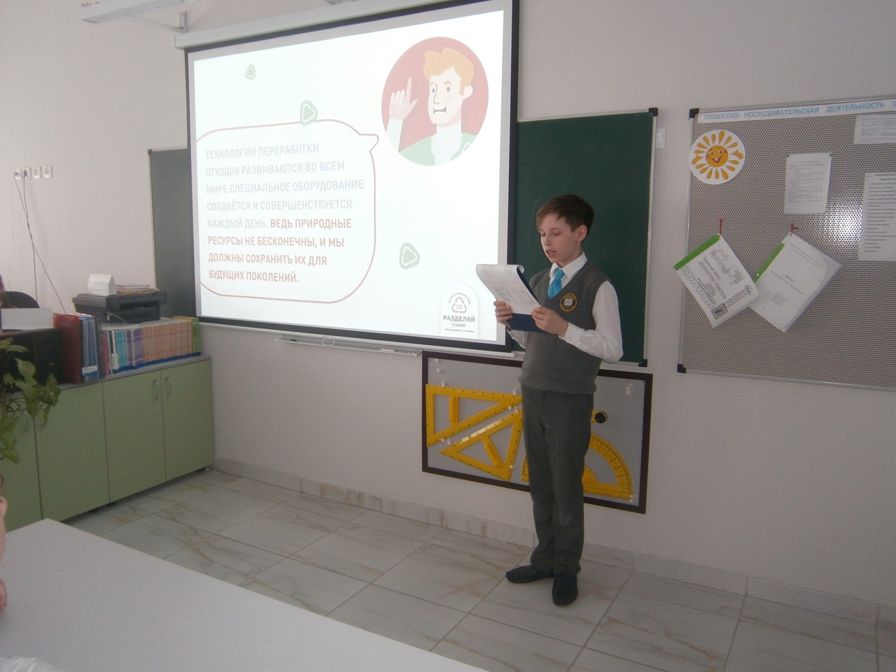 Всероссийский эко-урок 03.04.2017В 5 "а" классе прошел ещё один Всероссийский эко-урок. Тема: "Разделяй с нами-2". Приурочен он к Международному дню экологических знаний, который отмечается 15 апреля.Эко-урок провёл Попчинский Радмир. Ему активно помогала Ольга Рыжова . Молодцы !!!По материалам эко-урока был создан фото и видео-отчёт.В ходе игрового интерактивного урока ученики совершили путешествие по разным странам, побывали на перерабатывающих предприятиях, узнали о том,как устроен раздельный сбор отходов в разных уголках планеты, и познакомились с технологиями вторичной переработки привычных вещей.А главное — узнали новые способы, как внести свой вклад в решение этой проблемы.Присоединяйтесь к уникальному проекту ВСЕРОССИЙСКИЙ ЭКО-УРОК — создавайте чистое будущее вместе с нами!