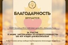 Наши ребята 2 группы с воспитателем Лирой Зуфаровной провели акцию "Листок добра". Это мероприятие, направленное на воспитание у детей доброты и уважения к старшему поколению, приурочено ко Дню пожилых. В рамках акции дети делают поделки (чаще всего — бумажные осенние листки с вырезанными сердечками внутри) и дарят их пожилым людям в окружении. Основная цель — подарить тепло, заботу и внимание старшему поколению. Присоединяемся к благодарностям в адрес группы.
