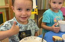 Ребята 6 группы с удовольствием едят кашу. Честь и хвала нашим поварам! -