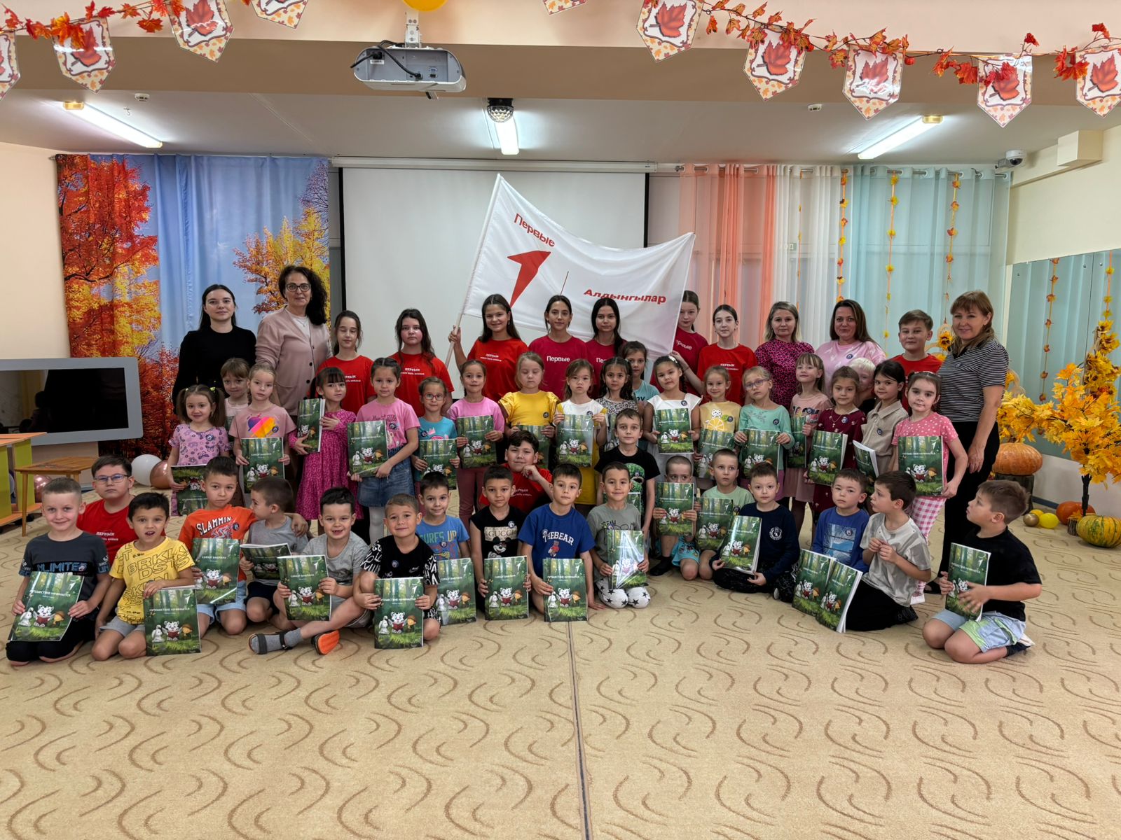 Сегодня воспитанники подготовительной группы стали частью большого и важного объединения - "Движение первых". Старшие кураторы движения - учащиеся СОШ №58 с гордостью провели для ребят этот особенный день: рассказали о Движении, станцевали зажигательный флешмоб, а так же вручили детям памятные значки и рабочие тетради.