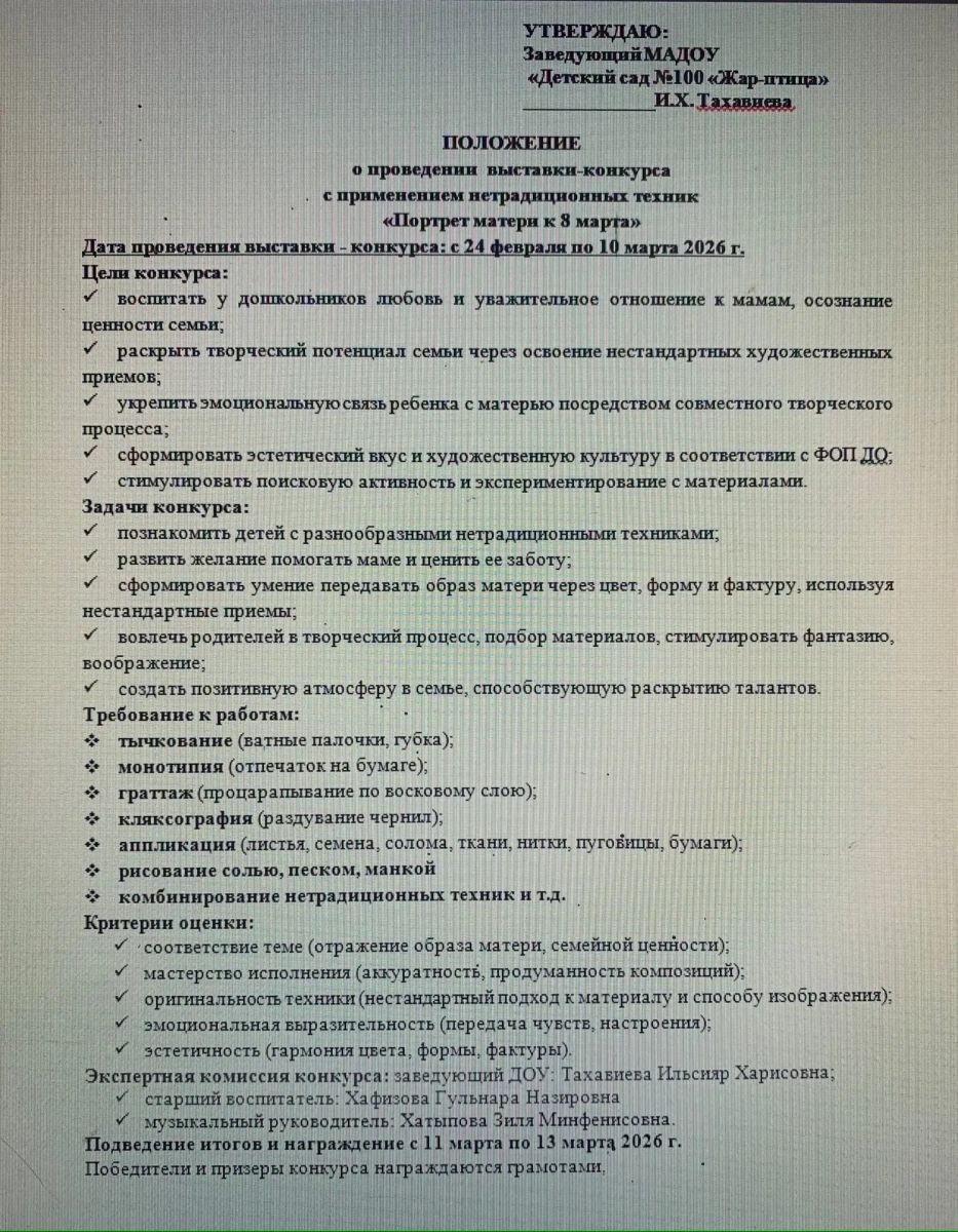 В МАДОУ "Детский сад №100 "Жар-птица" объявлен конкурс!