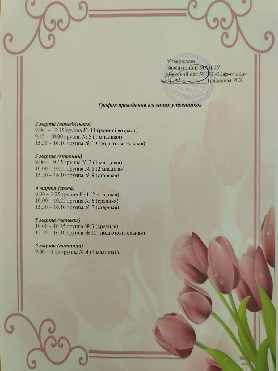 Расписание утренников, посвящённых Международному дню 8 Марта 24.02.2026
