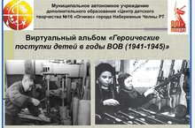 Приближается памятная дата – празднование 80-летия Победы в Великой Отечественной войне. Одной из самых волнующих страниц истории была и остается тема военного детства. Виртуальный альбом «Героические поступки детей в годы ВОВ» подготовлен обучающимися творческого объединения «Вернисаж» под руководством педагога Серовой Т.И.