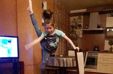 Девочки, обучающиеся в хореографической студии "Ассорти", руководитель Нафигина Г. Р., время даром не теряют. Они ежедневно выполняют дома акробатические упражнения, чтобы не потерять физическую форму.