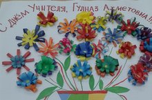 Ребята, обучающиеся в объединении "Радуга", руководитель Красново И. В., порадовали своего учителя, изготовив в подарок большую коллективную композицию-аппликацию к дню Учителя.