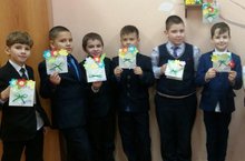 Мальчики, обучающиеся в творческом объединении "Школа мастеров ", руководитель Ильясова Р. Ф., поздравили своих одноклассниц с наступающим праздником и подарили им веселые букетики.