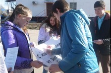 7 апреля во всемирный «День здоровья» участниками программы «SаMоSтоятельные дети» МАОУ ДОД «ЦДТ №16 «Огниво» была проведена антинаркотическая акция «Будь готов! Скажи НЕТ!».Более 1393 листовок с извлечениями из УК РФ под девизом «Какой будет твоя жизнь? Зависит только от тебя» были розданы участниками в общественных местах Комсомольского района. Ознакомившись с содержанием данных статей, прохожим предлагалось поставить подпись на плакате «С извлечениями из Закона ознакомлен».