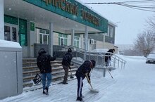 На помощь дворнику колледжа вышли студенты по специальности "Стоматология ортопедическая".
