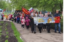 Шествие закончилось небольшим митингом и праздничным концертом, на котором наши маленькие герои прочитали стихи, исполнили легендарные песни «Бескозырка белая», «Катюша»