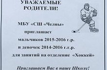 МБУ "СШ "Челны" приглашает для занятий на отделение "Хоккей"