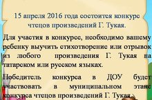 15 апреля в ДОУ пройдет конкурс чтецов стихотворений Г. Тукая