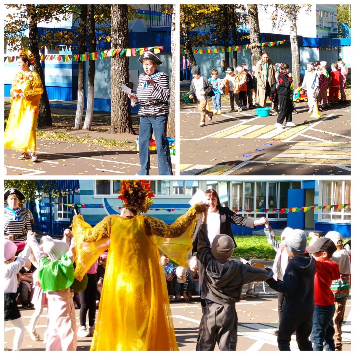 На празднике появился загадочный гость — настоящий пират! Он был полон сюрпризов и заранее подготовил особенные подарки для детей. Весёлое настроение и искры счастья заиграли в глазах детей, когда пришла Осень и помогла им найти клад, спрятанный нашим пиратом.