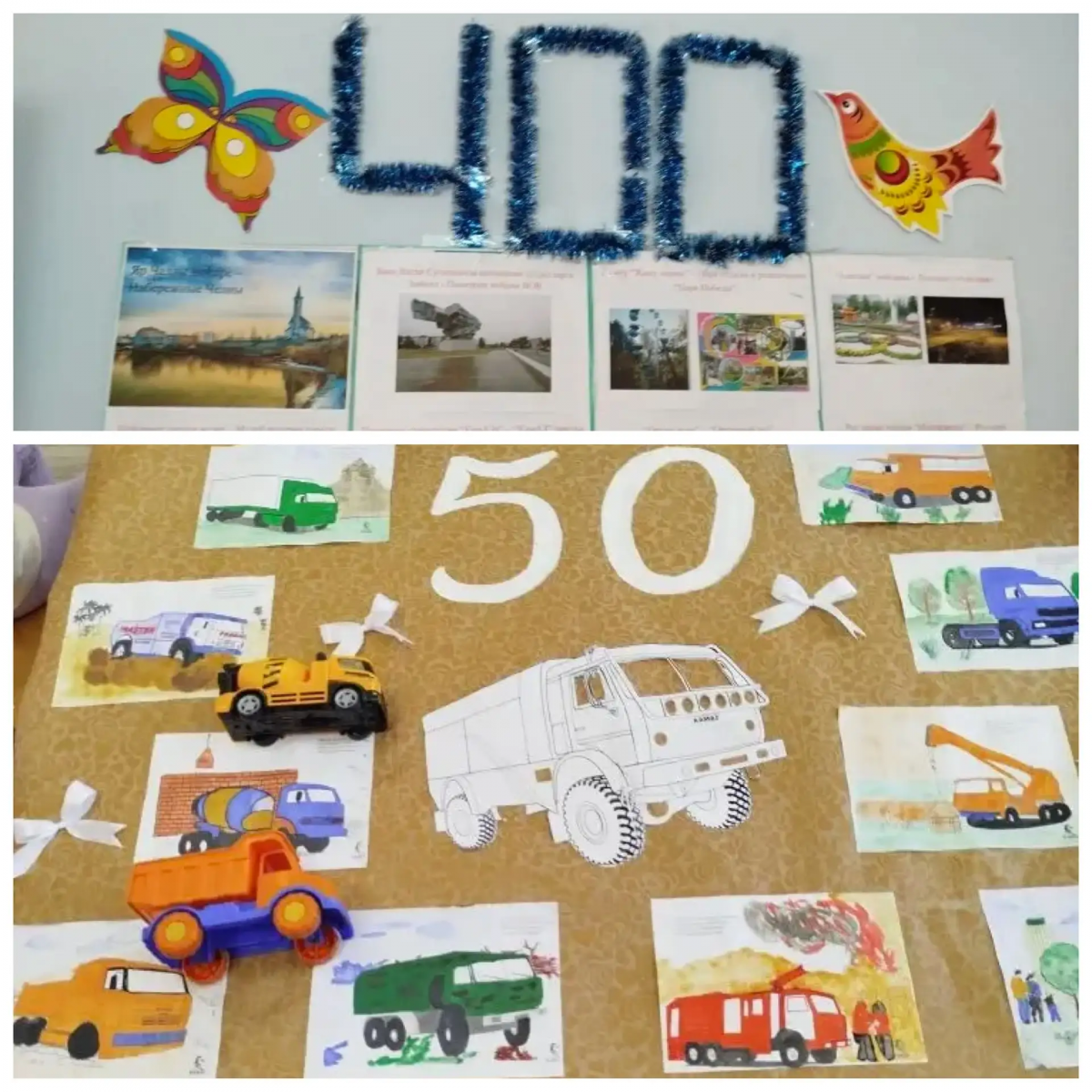 50-летие выпуска первого автомобиля КАМАЗа: Ребята узнали о рождении первого автомобиля, и в творческом порыве раскрасили множество КАМАЗов, каждый из которых получился уникальным. Результатом их стараний стала красочная стенгазета.