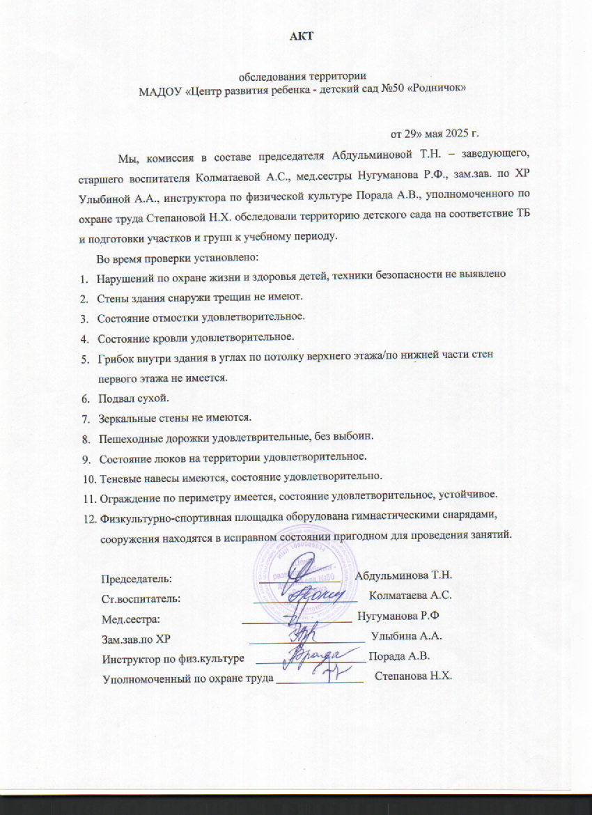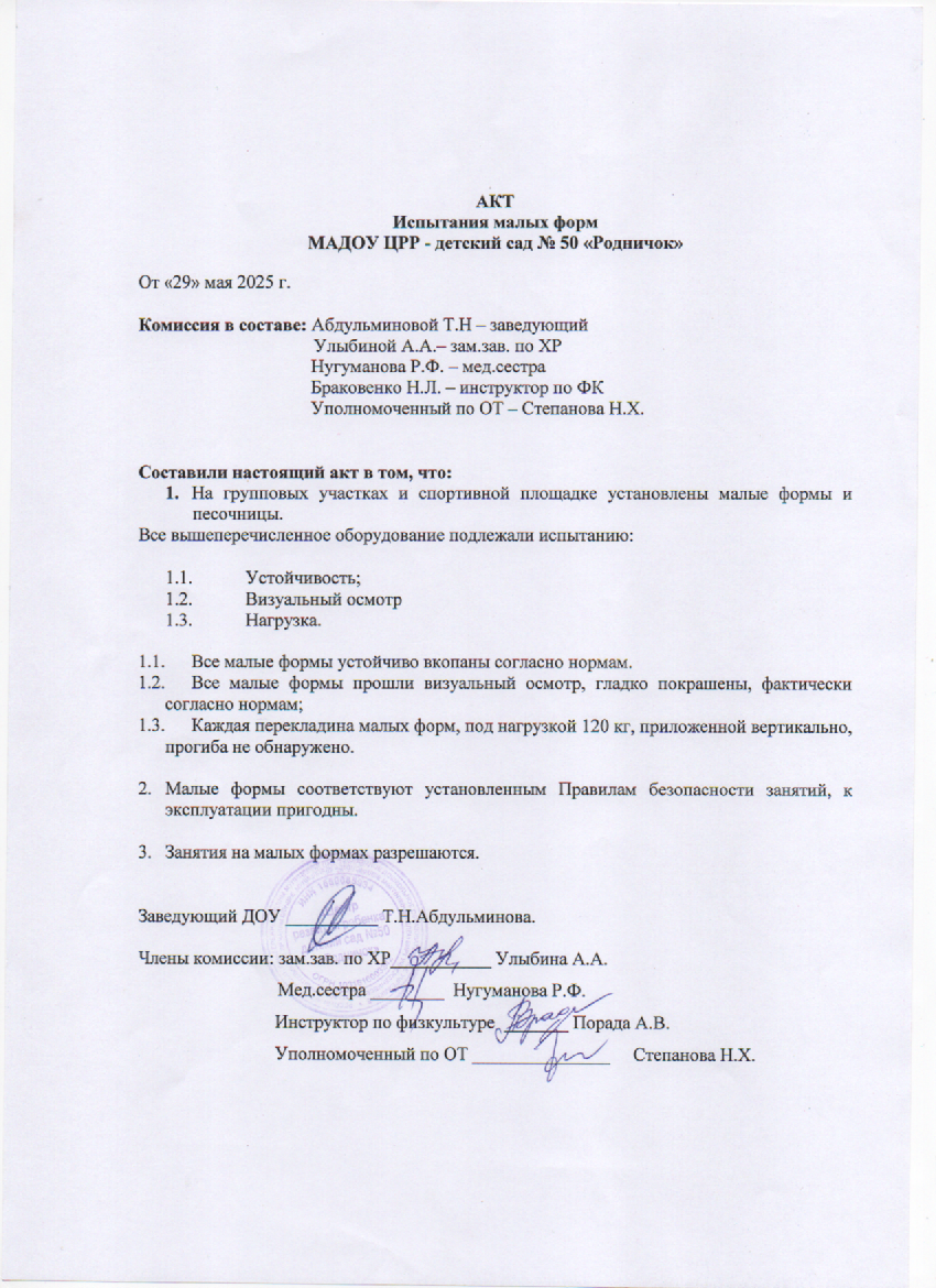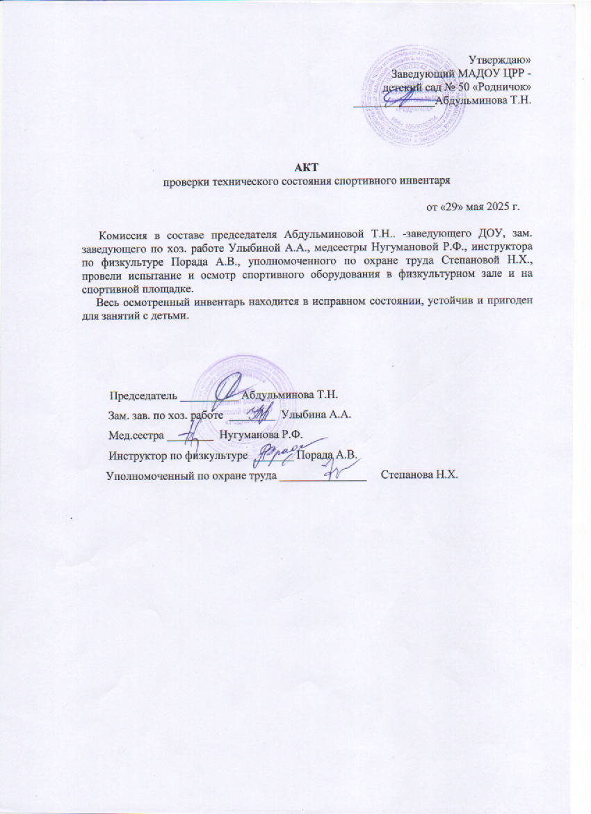Акт разрешения на проведение занятий по физической культуре в спортивном зале