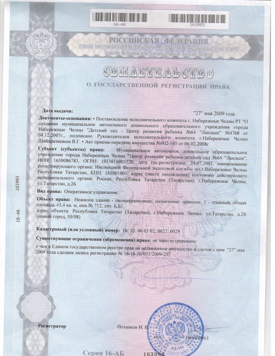 Свидетельство о государственной регистрации на овощехранилище.jpeg