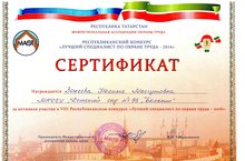 26 февраля прошел Республиканский конкурс «Лучший специалист по охране труда – 2016». Поздравляем Закееву Насиму Масгутовну за активное участие.