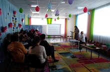 Сегодня в нашем саду прошел семинар для воспитателей татарского языка методического объединения №2 на тему "Балаларны татар теленә өйрәткәндә режим моментларында һәм башка эшчәнлекләрдә "Татарча сөйләшәбез" УМК куллану"