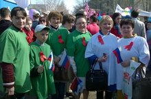 Праздничные мероприятия 1 мая начались в 9 часов утра с общегородской демонстрации, организованной партией «Единая Россия» и профсоюзами около парка Победы, и продолжились шествием с оркестром по проспекту Мира. В ней приняли участие организации и предприятия, социальные службы, национальные общины, студенты и молодежь города. Колонна при построении растянулась от остановки «30 комплекс» до площади Азатлык. В небе развивались флаги, а проспект пестрил разноцветными шарами и цветами в руках шествующих. Всего в мероприятии приняли участие более 30 тысяч горожан.