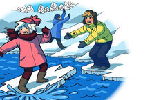 - весенний лед, покрытый снегом, быстро превращается в рыхлую массу.