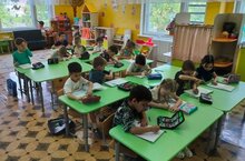 Очередное занятие кружка "Юный художник" у детей 3 группы было посвящено рисованию на тему "Пчелки" с воспитателем Верой Анатольевной. -