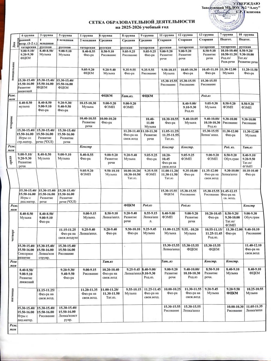 - Сетка образовательной деятельности детского сада на 2025-2026 уч.год