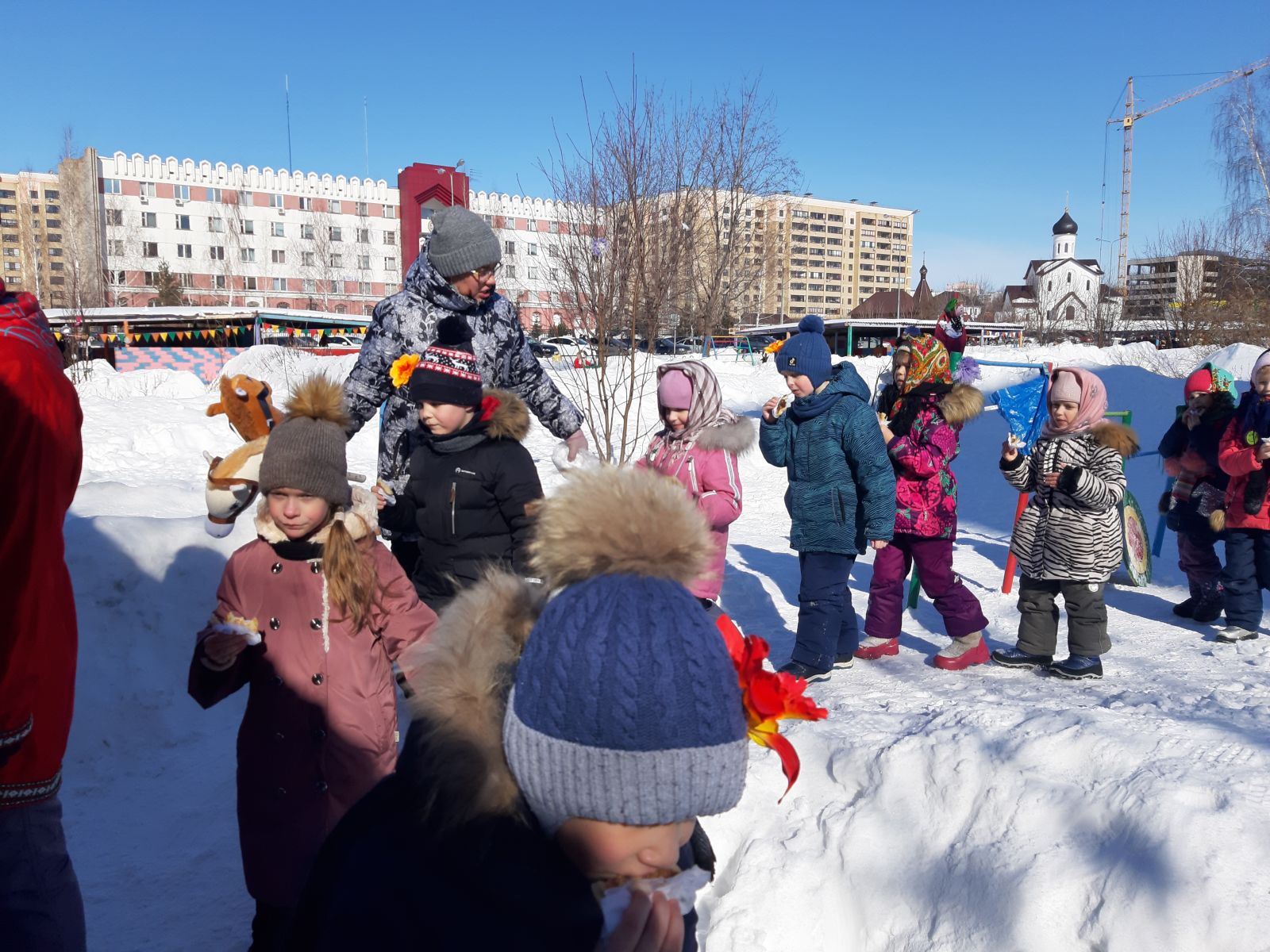 Традиционно на празднике мы провожали зиму и встречали Весну. Зима не хотела уступать место Весне. В этом споре победила Весна, и Зиме пришлось уйти. Все с радостью проводили ее и попрощались с ней до следующего года.