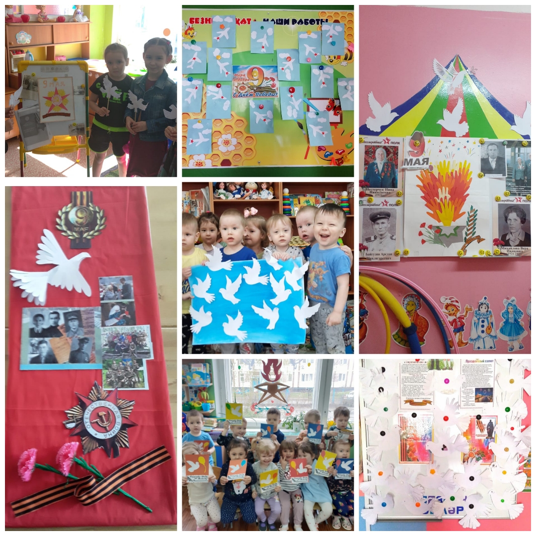 Во всех возрастных группах проводились тематические ООД, посвященные к 77-летию Победы в ВОВ: «Помним и чтим» «Спасибо, ветераны, Вам!»; «Вечный огонь»; проведен конкурс рисунков «Мой прадед - участник войны».