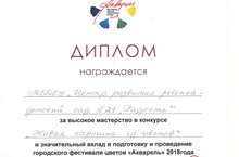 Поздравляем коллектив МБДОУ "Радость" с Дипломом за высокое мастерство в конкурсе "Живая картина из цветов" 11.09.2018