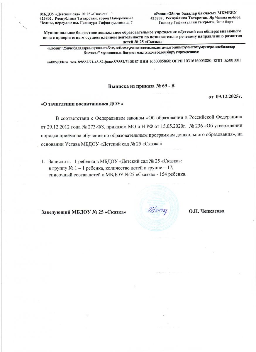 | Короткое название: | МБДОУ "Детский сад №25 "Сказка" |